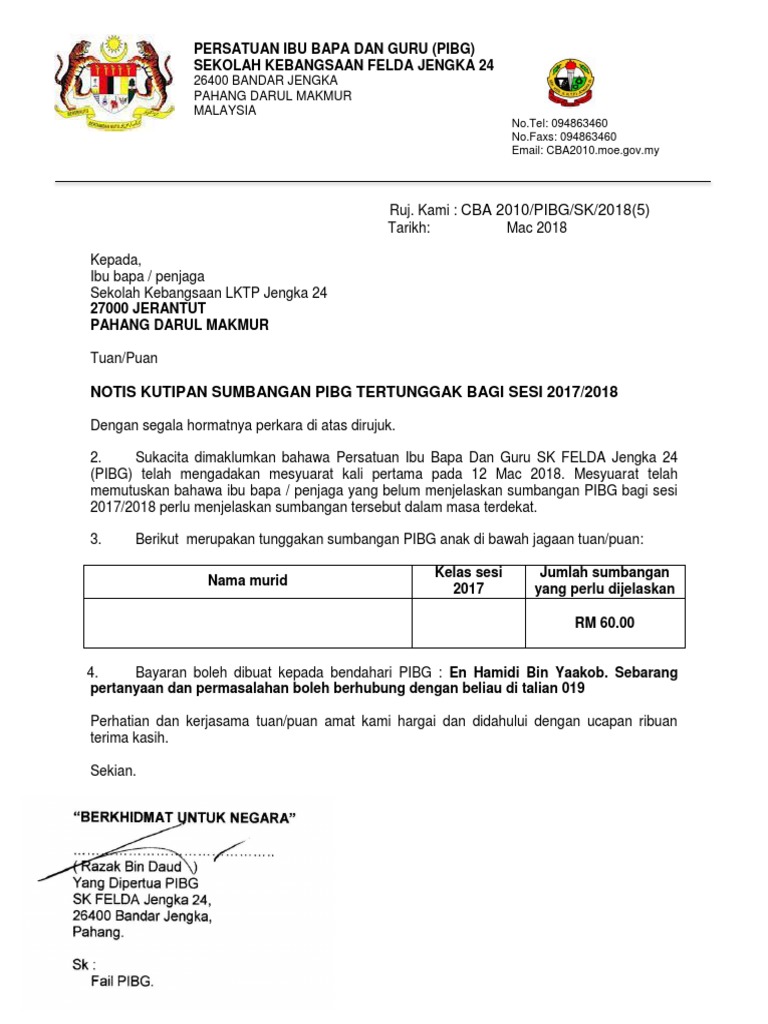 Surat Kutipan Yuran Tertunggak Pdf