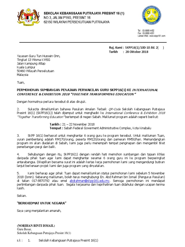 Contoh surat mohon tajaan yuran konferen. Surat Rasmi Permohonan Tajaan Surat Ras. 96 menganggap dokumen ini bermanfaat Tandai dokumen ini sebagai bermanfaat. TIPS TULIS CERPEN March 6 January 20 2012 77.