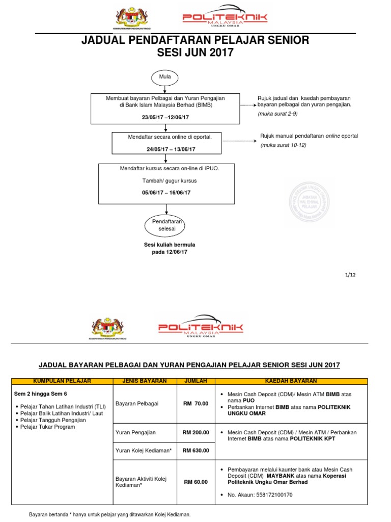 Jadual Pendaftaran Pelajar Senior Jun2017 Pdf